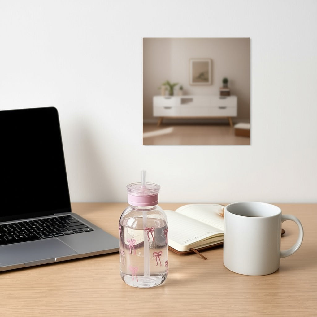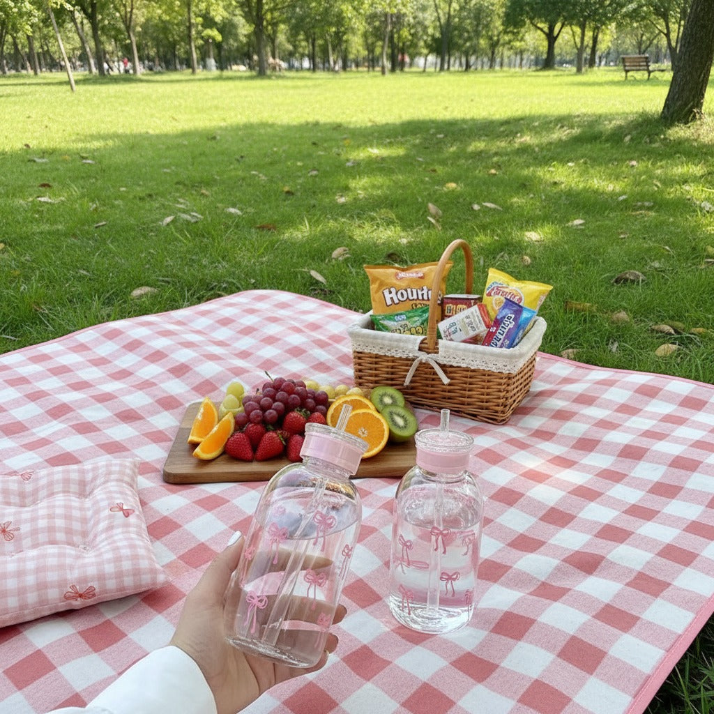 ✨ Adorable Cute Pink Bow Water Bottles 💖 | Perfect for Hydration 💧 | Trendy Glass Drink Bottles with Straw 🍓 | Kawaii-Inspired Design 🎀 |