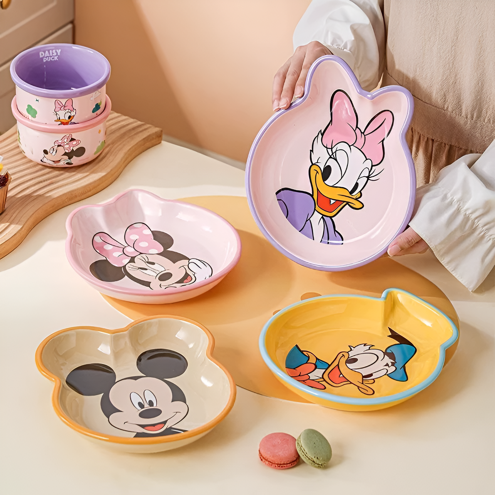 🍽️🍓 Mickey & Friends Cartoon Ceramic Plates Cute Minnie, Mickey, Donald & Daisy Face Dishes for Kids Meals & Snacks 🌈🍰