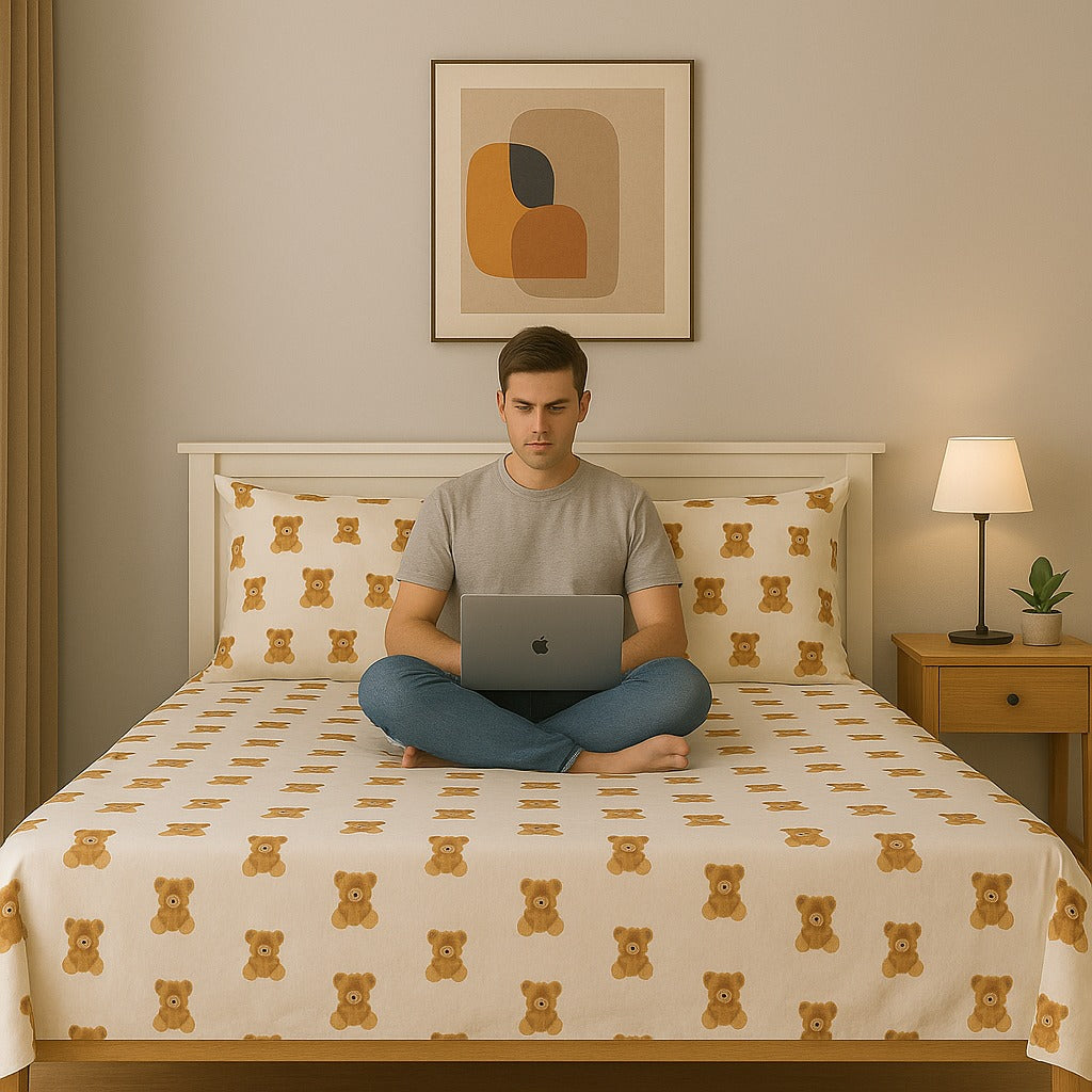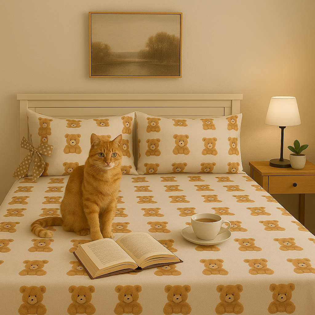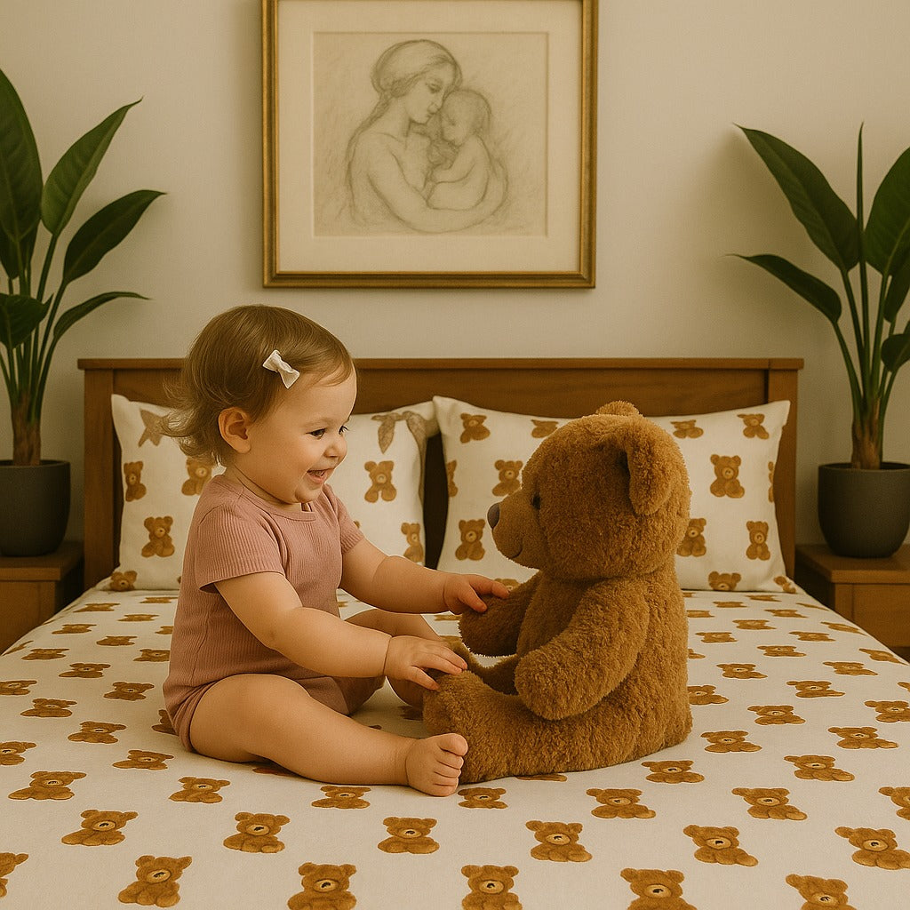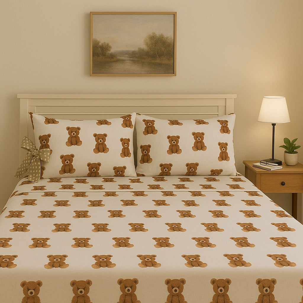 🧸 Teddy Bear Snuggle Time | Soft & Cozy Bedsheet Set for Sweet Dreams❤️